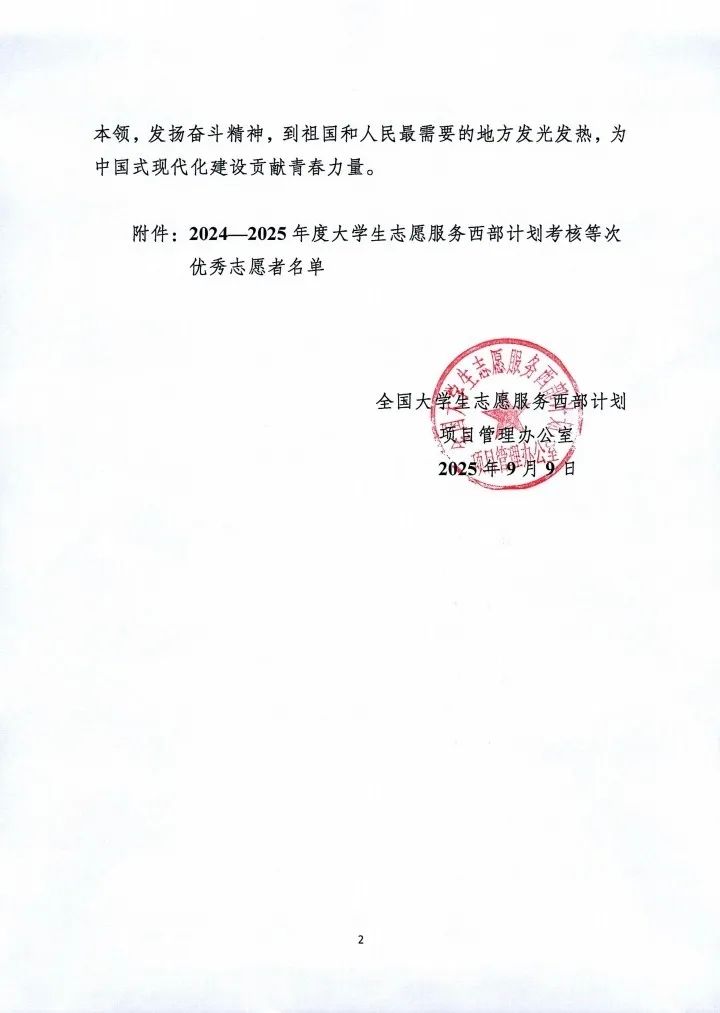 近日,全国大学生志愿服务西部计划项目管理办公室下发《关于印发2024—2025年度大学生志愿服务西部计划考核等次优秀志愿者名单的通知》,我院要祉怡、郭晓肖、杜淑青3人荣获“全国考核等次优秀志愿者”称号。