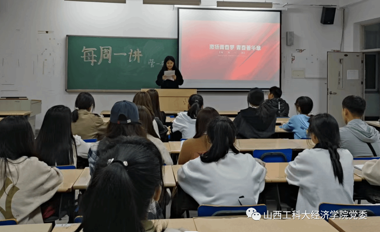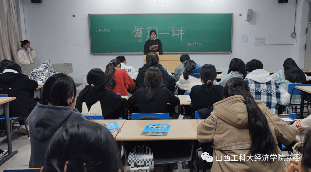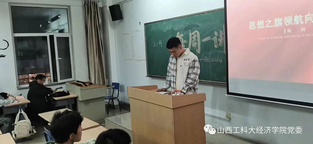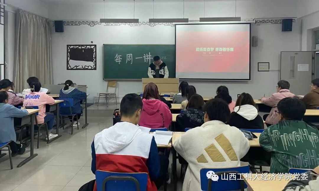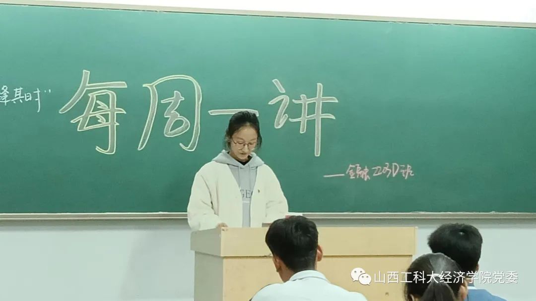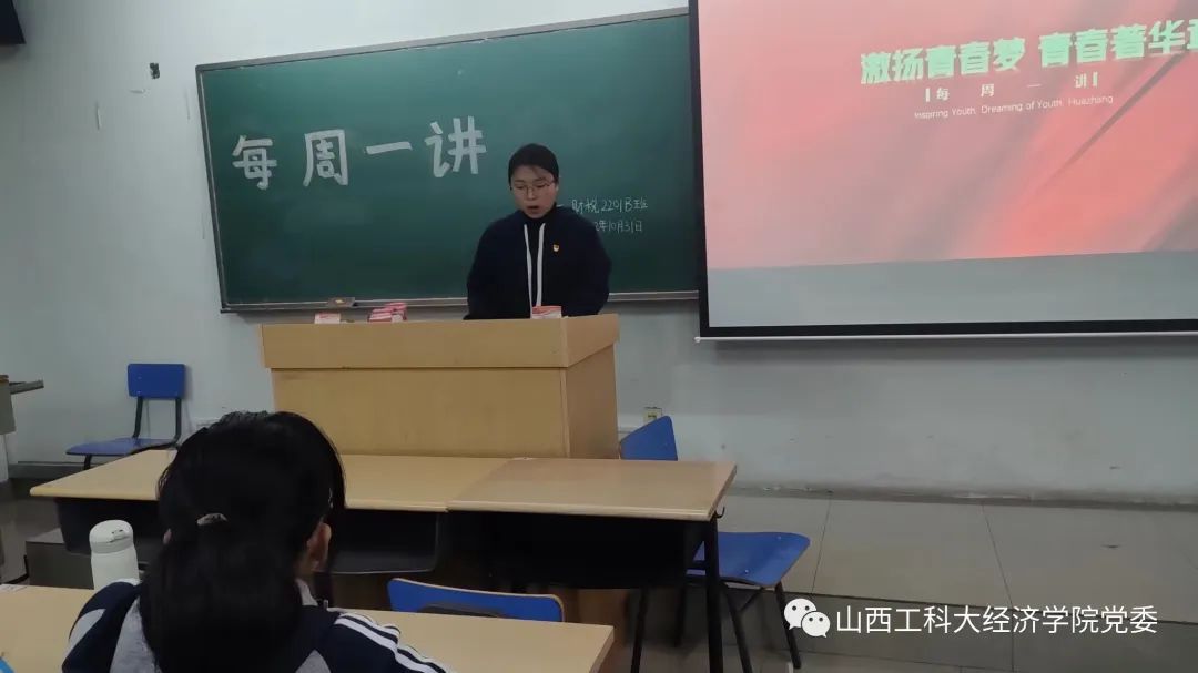 党的二十大报告让广大中国青年看到,伟大的新征程已经开始,奋进正当时。为了让同学们更加坚定不移听党话、跟党走,怀抱梦想又脚踏实地,敢想敢为又善作善成,立志做有理想、敢担当、能吃苦、肯奋斗的新时代好青年,经济学院于2022年10月31日开设了主题为“思想之旗领航向,人间正道开新篇”的每周一讲宣讲活动。